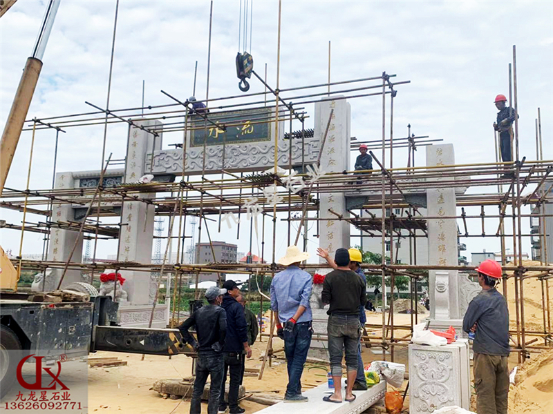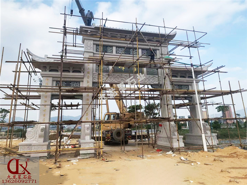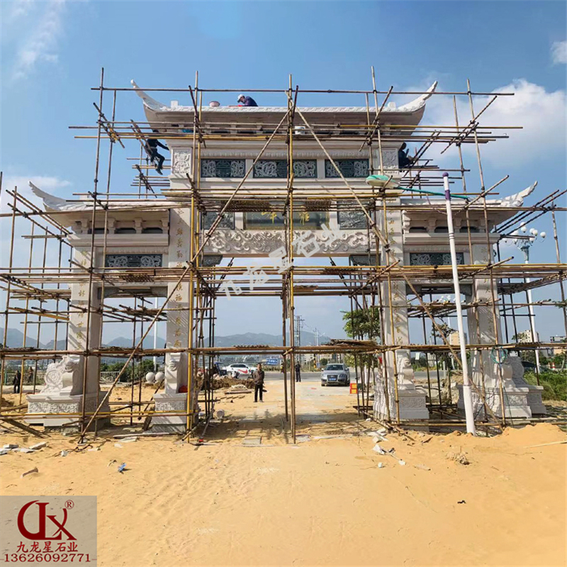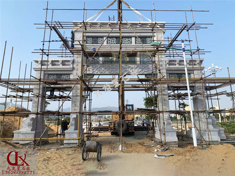 福州長樂?村口石雕牌坊 三門石牌坊——福建九龍星石業(yè)發(fā)展有限公司案例。