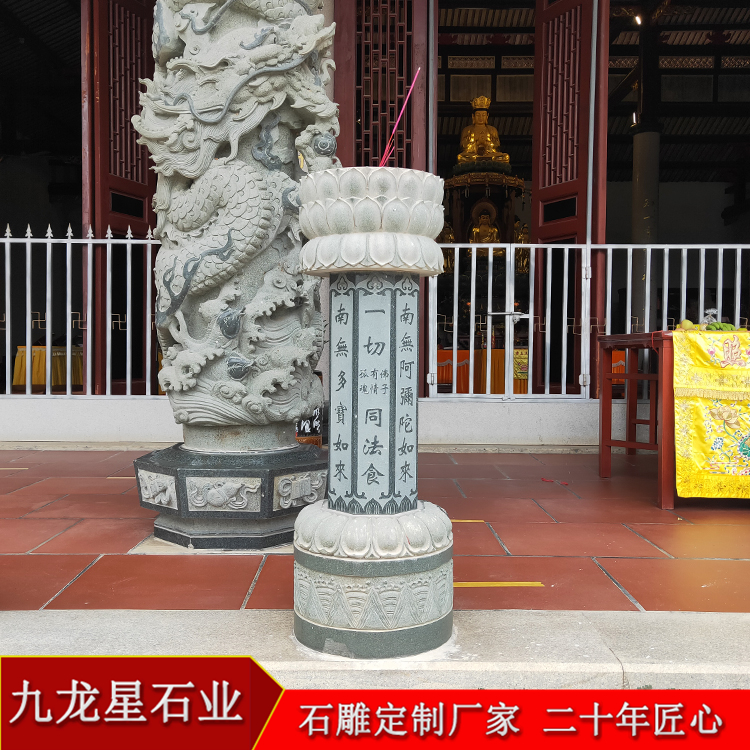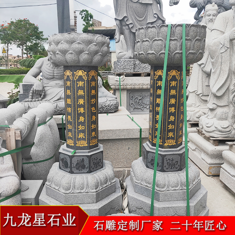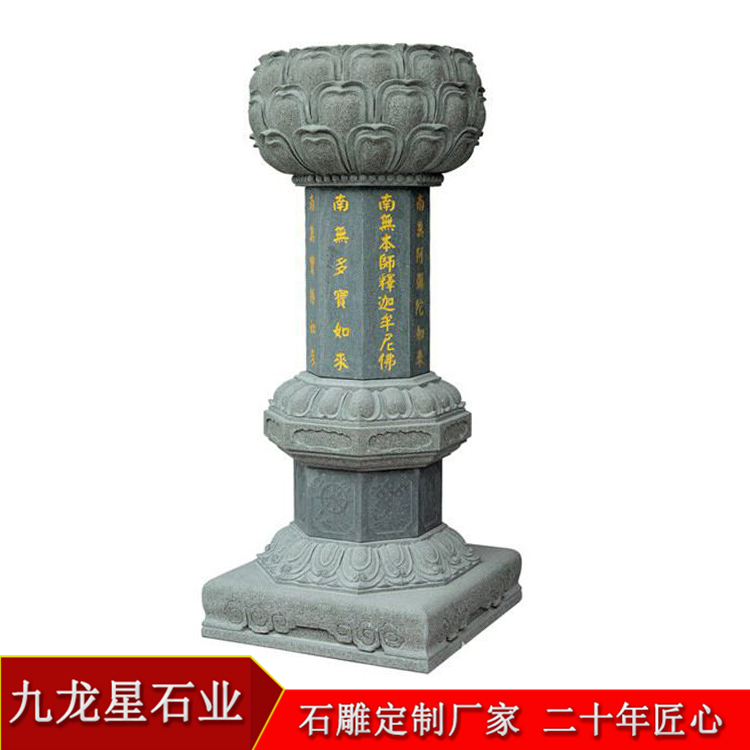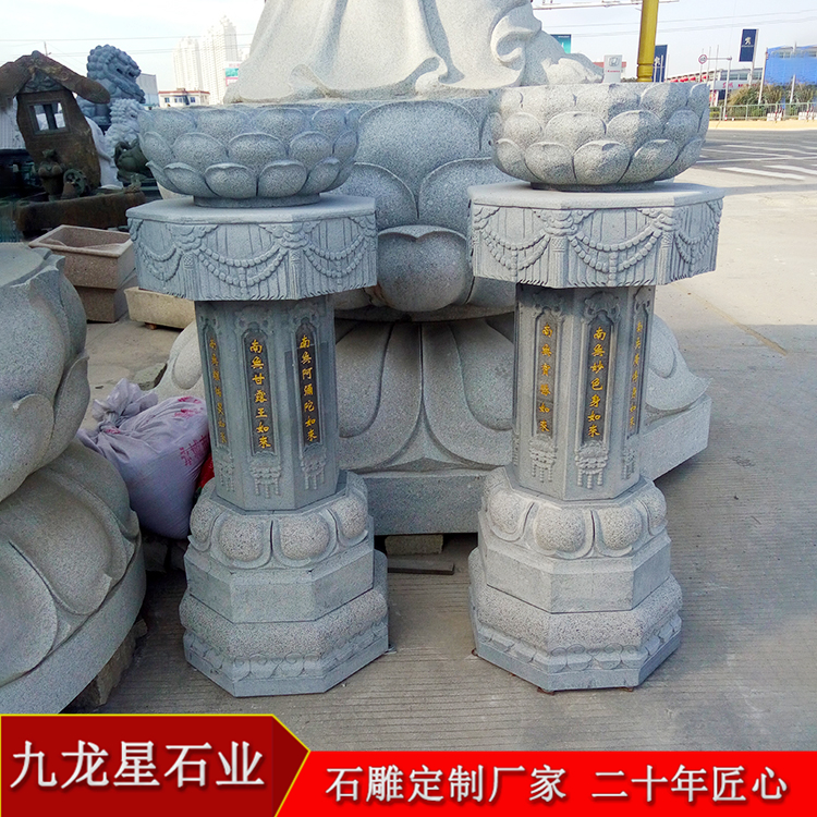 出食臺石雕雕刻是由各種天然石材制作而成的,擺放在寺院大雄寶殿兩側,用以盛放食物的用品。所放的食物較早是給以為叫做鬼子母神的佛教弟子食用,后面逐漸成為寺院建筑的一種必須擺件,其寓意也逐漸轉變?yōu)樗略簽榘朔饺罕娞峁┦澄铩?/p>