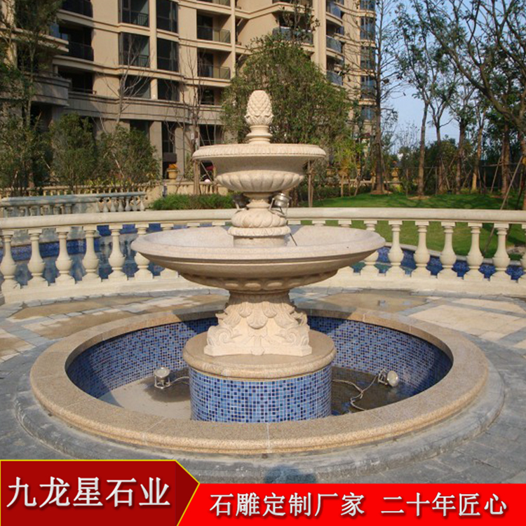 歐式噴泉石雕可由多種材質(zhì)制成,其中經(jīng)常使用的是由天然石材制成的噴泉石雕,也可稱石雕水缽。歐式噴泉石雕不但具有天然石材質(zhì)地堅硬、耐磨、***重量感的特征,更為難得的是石雕噴泉表面的質(zhì)感以及強烈的可塑性和表現(xiàn)力,可使噴泉盡顯各種不同的藝術(shù)風格。