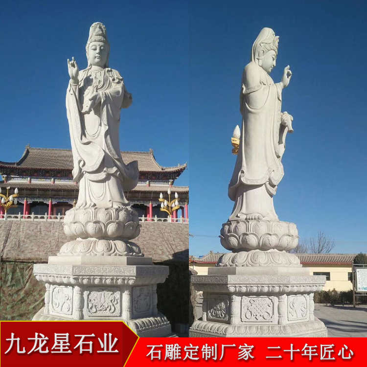 同時要想制作一尊好的石雕觀音像出來,那就就必須控制好源頭。原材料是基石 ,是一尊質(zhì)量好的觀音像的有效保證。用以制作石雕觀音像的石料外觀顏色足夠均 勻的話,制作出來的觀音菩薩像也會更加的美觀。比較常見的材質(zhì)是花崗巖、漢白玉 。