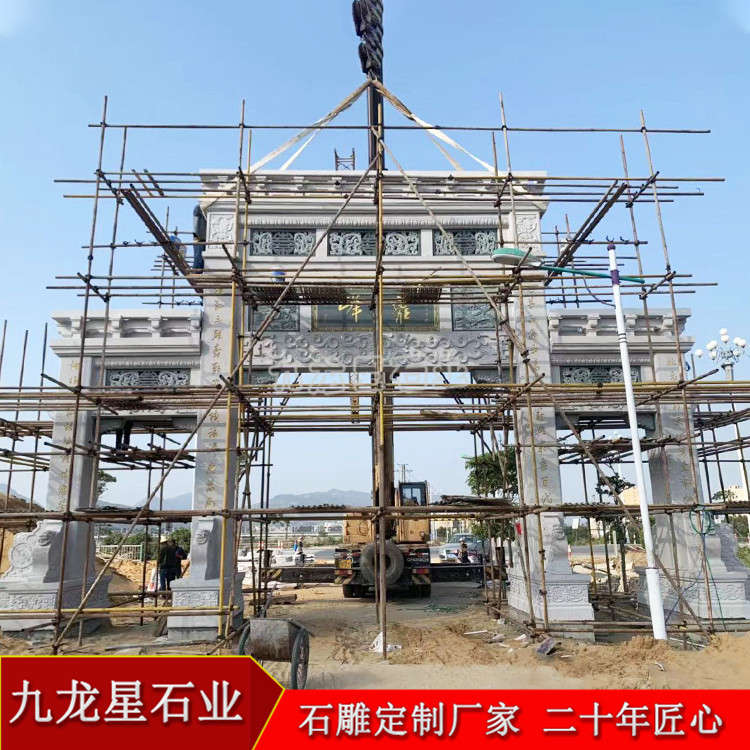 村口三門石雕牌坊?福州長(zhǎng)樂(lè)——福建九龍星石業(yè)發(fā)展公司。