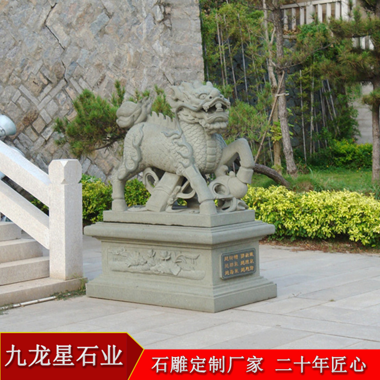 企業(yè)工廠門口石雕麒麟可以是單純的擺件,也可以是值得大家欣賞的一處景觀。生活中 已經(jīng)越來越多的石麒麟出現(xiàn)了,庭院門口、工廠、銀行、大廈、樓盤、酒店等等,一 對對大氣的石麒麟屹立在兩旁。