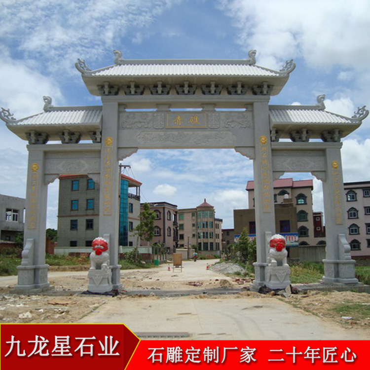 九龍星村牌坊圖片大全不僅造型美觀,大氣,威武,就是在石牌坊上 雕刻的浮雕花紋也同樣精美,細(xì)致,有著很多不同的寓意,在視覺(jué)上能給人一種 視覺(jué)震撼。