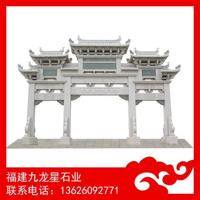 石雕牌坊是古代官方的稱呼,老百姓稱它為石雕牌樓。其實(shí)石雕牌坊與石雕牌樓是有區(qū)別的,石雕牌坊沒有樓的構(gòu)造即沒有斗拱和屋頂,而石雕牌樓有屋頂,它有更大的烘托氣氛。它們都是我國古代用于表彰、紀(jì)念、裝飾、標(biāo)識(shí)和導(dǎo)向的一種建筑物,多建于宮苑、寺觀、陵墓、祠堂、衙署和街道路口等地方。也有一些宮觀寺廟以牌坊作為山門的,還有的是用來標(biāo)明地名的,又名牌樓,為門洞式紀(jì)念性建筑物,宣揚(yáng)封建禮教,標(biāo)榜功德。石雕牌坊也是祠堂的附屬建筑物,昭示家族先人的高尚美德和豐功偉績,兼有祭祖的功能。