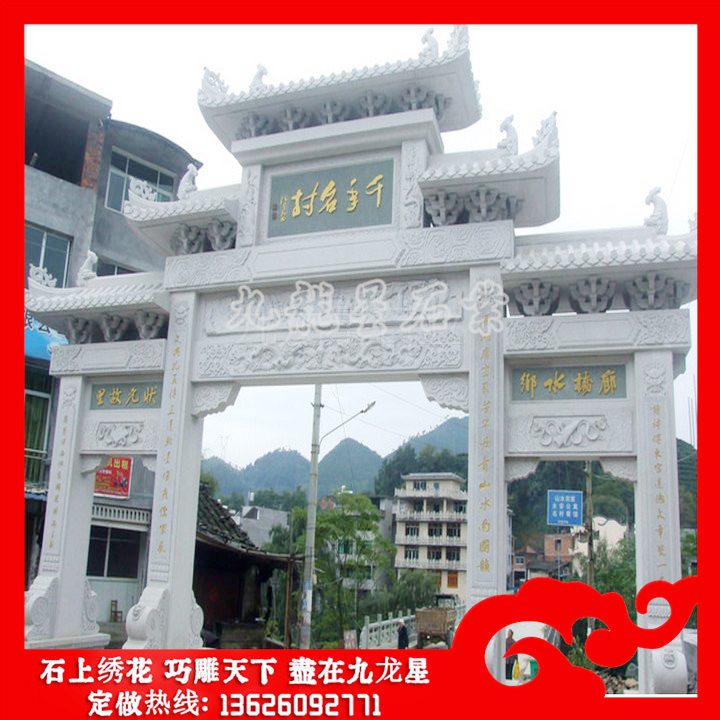 石雕山門(mén)牌坊(寺院山門(mén)牌坊 石雕山門(mén)價(jià)格分析)——九龍星石業(yè),二十年石雕牌坊廠家,工藝精湛,自帶礦山!