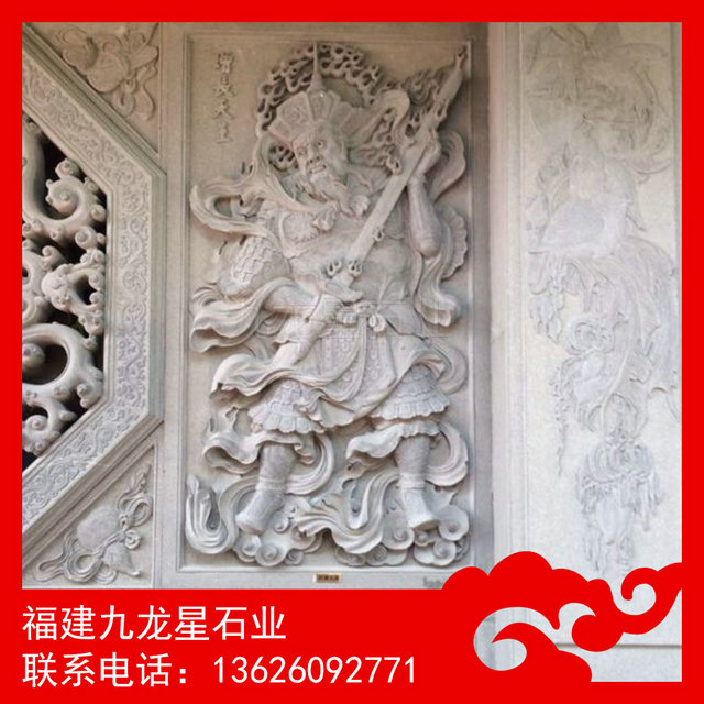 四大天王浮雕 寺廟佛像浮雕——又稱護(hù)世四天王,是佛教的護(hù)法天神,俗稱“四大金剛”。四大天王為二十諸天中的四位天神,位于第一重天,第一重天又叫四天王天。根據(jù)佛教經(jīng)典,須彌山腹有一山,名犍陀羅山,山有四山頭,各住一山各護(hù)一天下(四大部洲,即東勝神洲、南贍部洲、西牛賀洲、北俱蘆洲),故又稱護(hù)世四天王 ,是六欲天之第一。他們的神像通常分列在凈土宗禪宗佛寺的第一重殿兩側(cè),因此又稱天王殿。