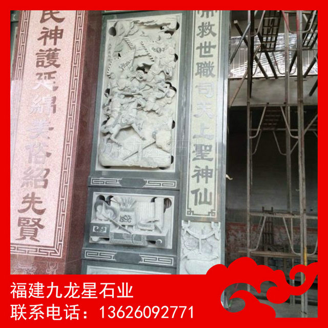 寺廟浮雕(祠堂浮雕 宗祠浮雕)——每一座寺廟成立之初都是抱著屹立千年不倒之決心的,所以用石材制作各種寺院室內(nèi)外的東西已成為一種大趨勢(shì)。青石制作出來(lái)的浮雕無(wú)論是使用在室內(nèi)還是室外,即使放了千年,染上了青苔,兩種顏色相近,這也只會(huì)增添浮雕的韻味,而不是讓人感覺(jué)到很臟。而且青石比較素雅,與佛教的清靜無(wú)為非常相稱。