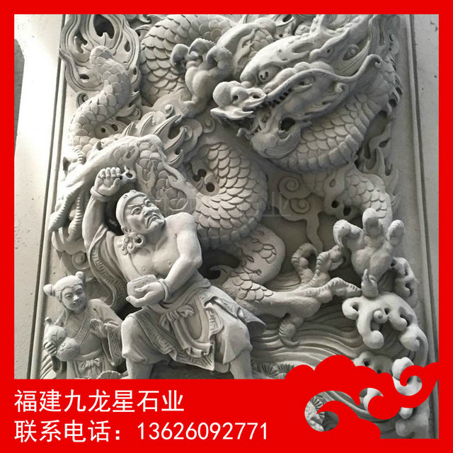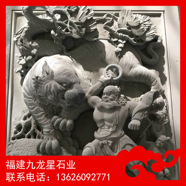 降龍伏虎羅漢浮雕是利用高浮雕的技術(shù)把降龍伏虎羅漢生動的雕刻在石材上。