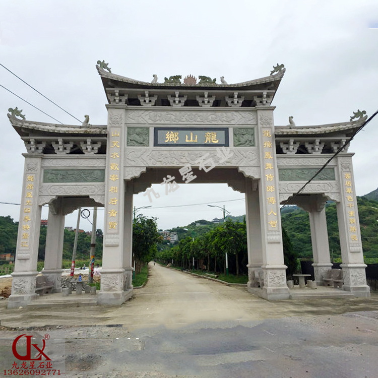天然花崗巖雕刻石雕牌坊的款式眾多,在村牌坊的額扁上雕刻上村莊稱號(hào),能夠起到標(biāo)識(shí)地名,指引路途的效果,建筑村牌坊讓人感受到了一種調(diào)和繁榮昌盛的文明,新鄉(xiāng)村建設(shè)村牌坊能夠美化村容村貌,是新鄉(xiāng)村建設(shè)的一種體現(xiàn)和標(biāo)志,雖說建筑村牌坊花了一些錢,但這是非常值得的。