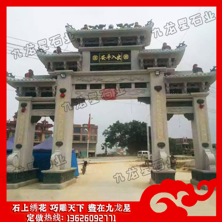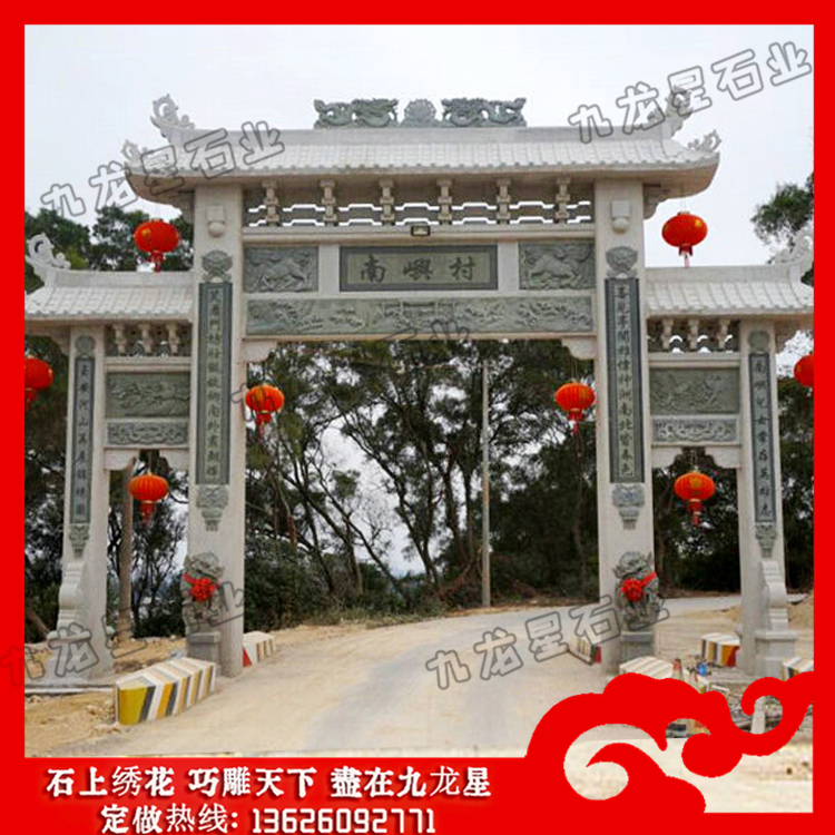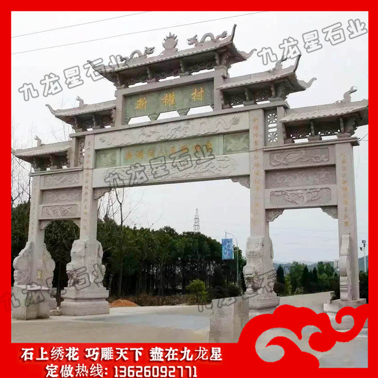 石雕牌坊(鄉(xiāng)道公路建村牌坊 石雕五樓牌坊制作價格)——九龍星石業(yè)。