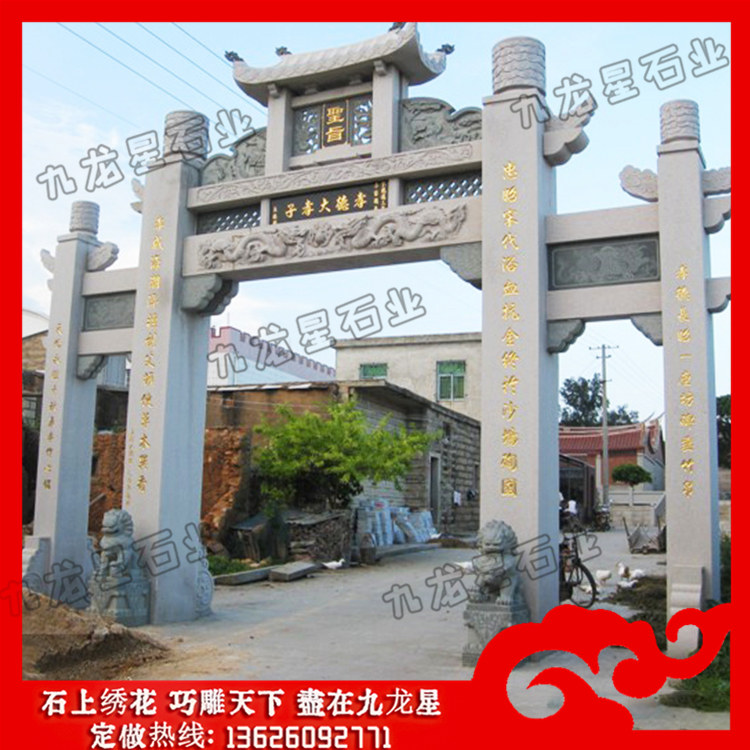 鄉(xiāng)道公路建村牌坊從建筑風(fēng)格和樣式上面就可以分為不同的石雕牌坊,有徽式、蘇式、柜式牌樓等等。然而還分為南方、北方不同的樣式。按材質(zhì)可分為:石坊、水泥坊、磚坊、木坊。按名稱分:有功德牌坊、忠正牌坊、功名牌坊、貞節(jié)牌坊、百歲壽慶牌坊、歷史紀(jì)念牌坊等等。根據(jù)不同的意義又不一樣的牌坊出現(xiàn),這就已經(jīng)體現(xiàn)出了石雕五樓牌坊制作技術(shù)。