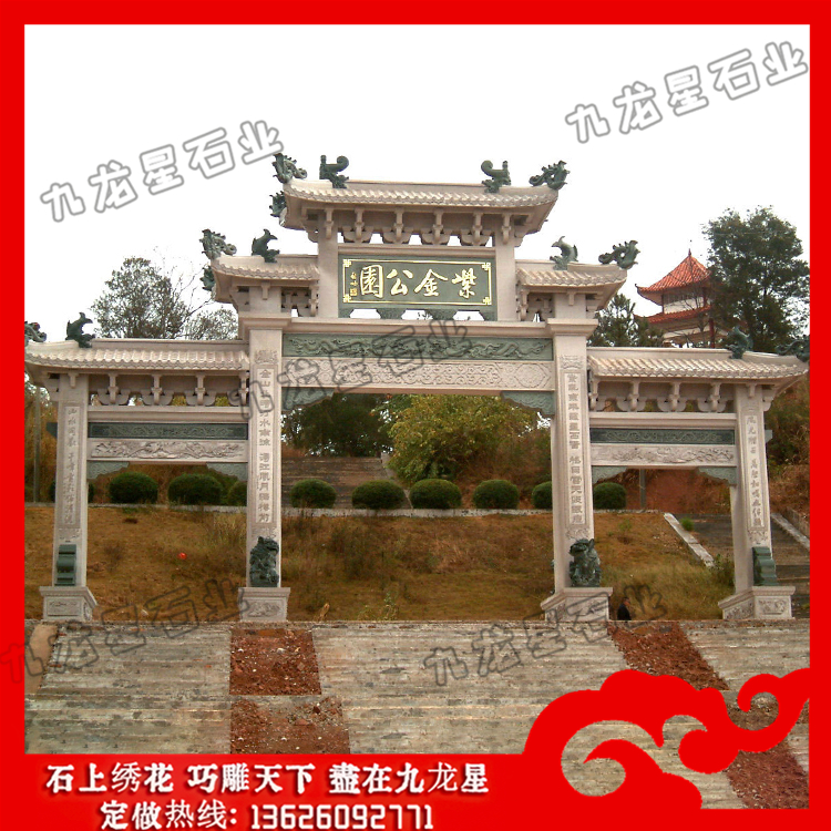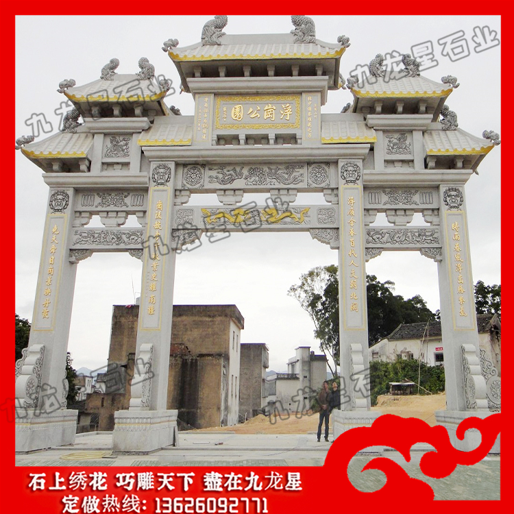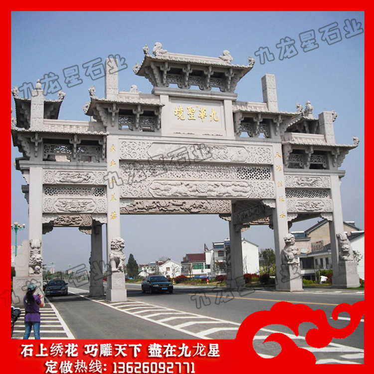 公園入口牌坊一般都是根據(jù)甲方需要定做的,這對石雕牌坊的雕刻用料都比較講究,要以安全穩(wěn)定的牢固性材料為主。公園入口牌坊造價不僅跟雕刻工藝還跟石料有著很大的關(guān)系,在挑選用料的時候要能夠注意,現(xiàn)在比較常用的有青石、花崗石、大理石等,要說用料的牢固性和美觀性的話,其實以花崗石為代表的石料相當(dāng)不錯?;◢弾r石雕牌坊加工材質(zhì)比較堅固,花色多樣,能夠起到很好的裝飾性,而且耐磨性好,抗風(fēng)化性好,讓其能夠成為經(jīng)典的雕刻用料選擇,廣泛應(yīng)用在公園入口牌坊的設(shè)計中。