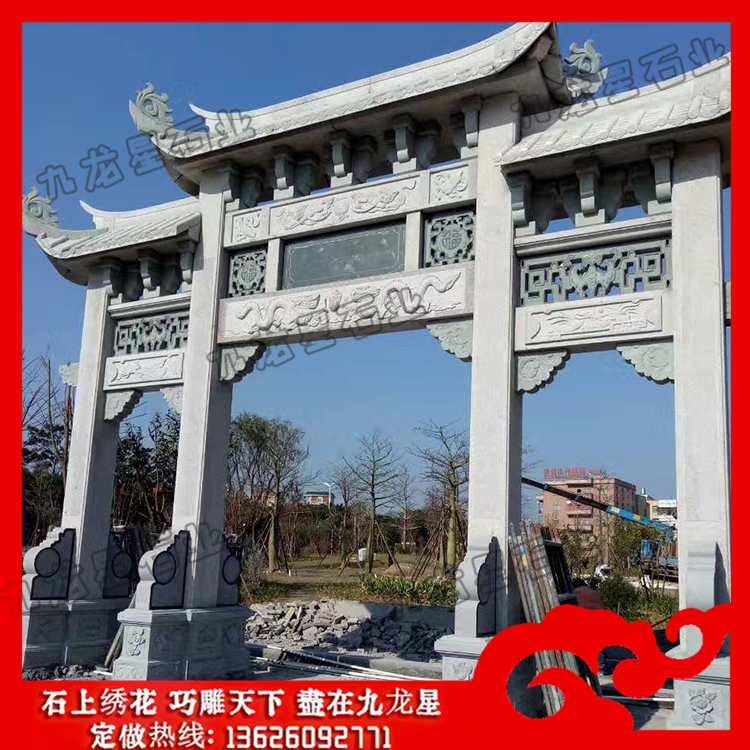 石牌坊(公園入口牌坊造價 花崗巖石雕牌坊加工)——九龍星石業(yè)。