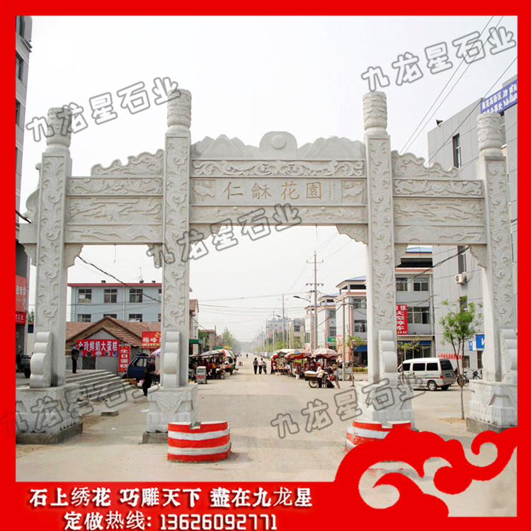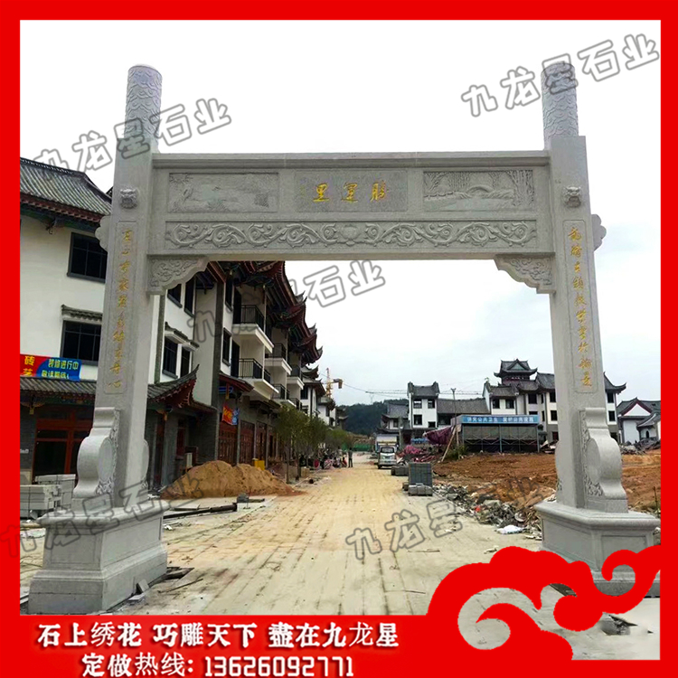 石雕牌坊(三門石牌坊雕刻 農(nóng)村簡易牌坊圖片大全)——九龍星石業(yè)。