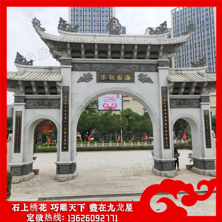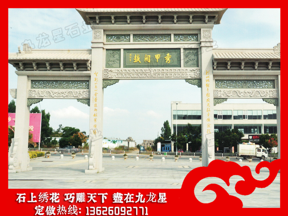 修建石牌樓的地方一般都景色宜人,自古引來無數(shù)文人在此石門樓前作詩,畫家作畫,從詩畫辭賦中能明確看出“情”字在整個作品中的重要表現(xiàn),也是當(dāng)時(shí)社會文化背景下人們對生活的憧憬和審美層次的體現(xiàn)。說到石牌坊價(jià)格多少,不得不說牌坊的規(guī)格大小,這直接影響到了石雕牌坊雕塑的報(bào)價(jià)。石牌坊的規(guī)格大小各有不同,規(guī)格大小也將直接影響到了石牌坊的用料情況以及施工難度等,在預(yù)算的時(shí)候自然也都會有所不同。石雕牌坊雕塑常見的有一門、三門、五門等等。