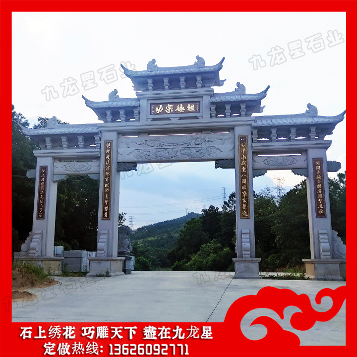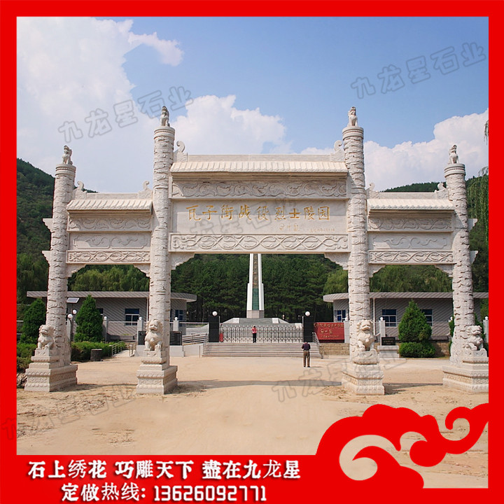 石雕牌坊(墓園牌坊大門 墓地用石牌坊圖片樣式)——九龍星石業(yè)。