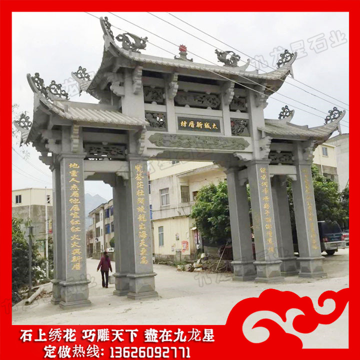 三門石牌坊(村口石牌樓價格 石牌坊廠家批發(fā))——九龍星石業(yè)。