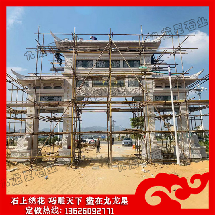 新農(nóng)村石雕門(mén)樓的種類(lèi)有一門(mén)到五門(mén)按照的順序來(lái)排,村口石頭牌坊價(jià)格是高到低的,當(dāng)然還有一些大型石牌坊,其價(jià)格要比五門(mén)石牌坊高的多。每一種還可以按照有無(wú)樓頂分為沖天式和有樓式,有樓式石牌坊還可以按樓數(shù)的數(shù)量區(qū)分,對(duì)應(yīng)的石頭牌坊價(jià)格處于從低到高的走勢(shì)。