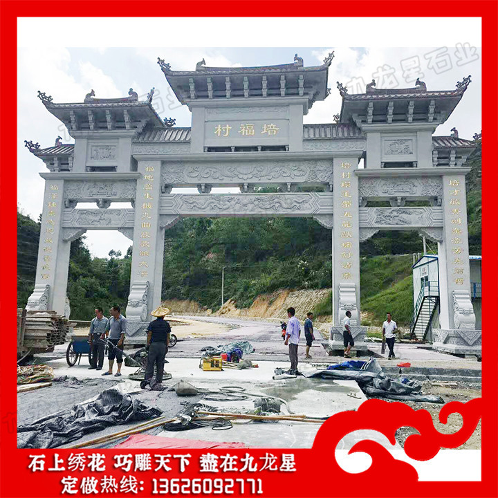 農村牌坊圖片大全價格有多種多樣,牌坊的造型設計款式不同,對應的農村牌坊價格就會不同。農村牌坊圖片大全雕刻主題離不開社會主流社會意識形態(tài),在傳統(tǒng)石雕裝飾中,漫長的奴隸社會和封建社會,始終貫穿著統(tǒng)治階級的“以禮治國”“仁義禮智信”“尊老愛幼”“君君臣臣”等思想。農村牌坊圖片大全的雕刻內容反映著普通老百姓過上平靜、富足、安康生活的向往,“福祿壽喜”是藝術表達亙古不變的主題。美好祝愿和吉祥寓意,往往通過約定俗成的動物、植物、人物、事務形象傳達出來。