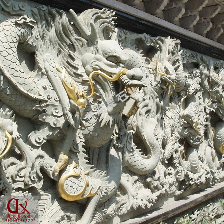 九龍照壁墻雕刻造型本身就有很好的吉祥寓意,再和現(xiàn)代設立理念相結合,能夠成為不錯的設計體裁。龍的圖畫充滿著吉祥如意,所以許多裝飾物都樂意挑選龍的造型。無論龍的數(shù)量有多少,他們能夠從這里借鑒一些內(nèi)容,并且和現(xiàn)代建筑裝飾理念相結合,會有新的思想上的火花,對于現(xiàn)代建筑來說有很大的含義。
