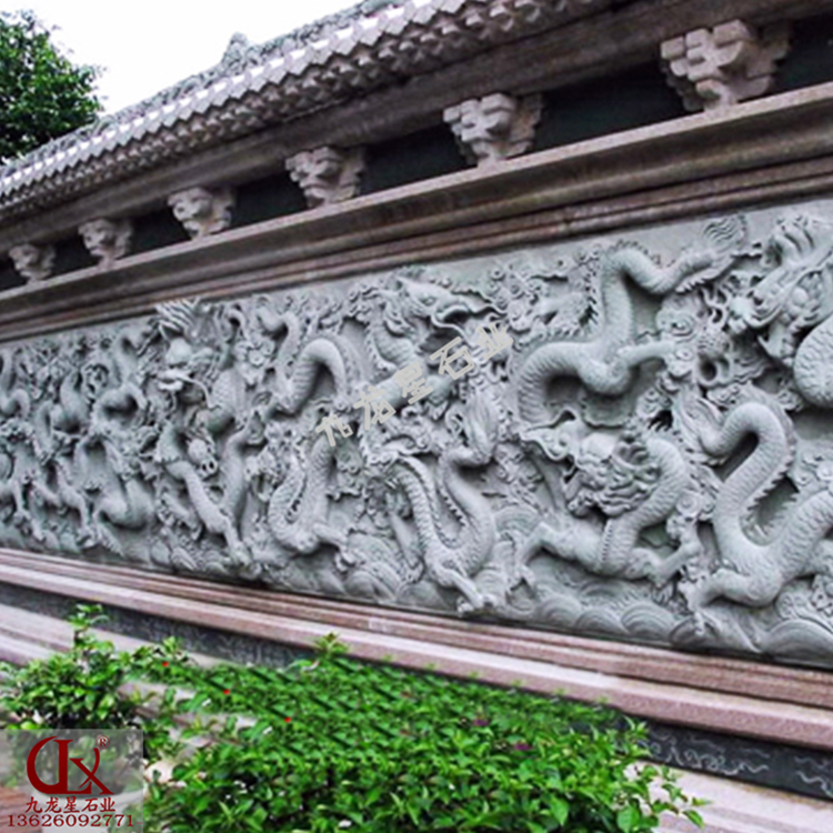 九龍照壁墻雕刻 石雕九龍浮雕圖案