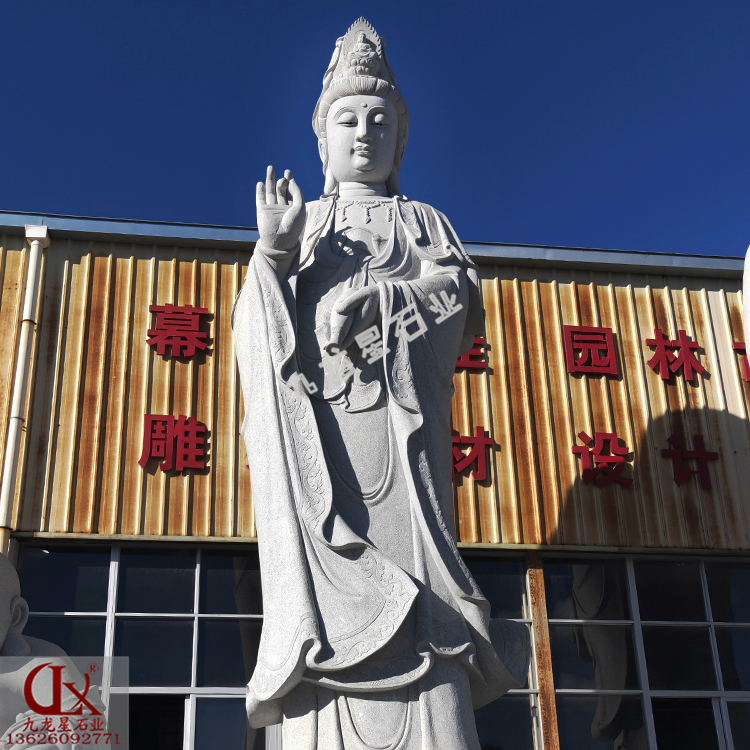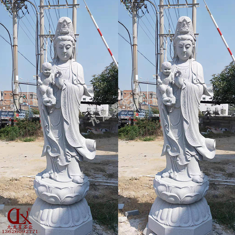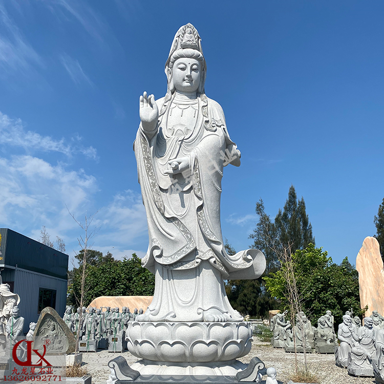 大型觀音菩薩石雕的制作石材有青石、花崗石、大理石、燕子石、漢白玉等。漢白玉石材雕琢制造的觀世音菩薩像賦有光澤感以及通透感,在制作上的本錢稍高;而花崗石以及青石石材制作的觀世音菩薩也是比較常見的,外表有磨砂的質(zhì)感,為青白色的居多。對于制作一些規(guī)劃大的石雕觀音像的雕琢來說,挑選花崗石材在價格上較為優(yōu)惠。大理石石材制作的石雕觀世音像,外表看上去平滑,紋路也非常的柔軟,且大理石石材的品種類高達三十余種,可制作出不同款式的觀世音像。材質(zhì)不同,石頭觀音菩薩圖片價格也會不同,具體還是需要根據(jù)客戶的需求來定做。