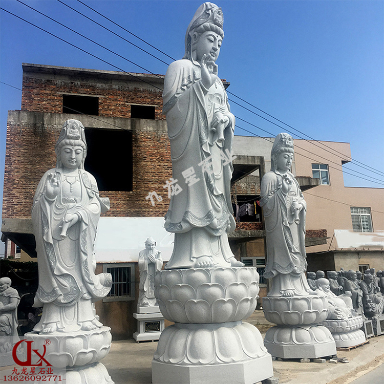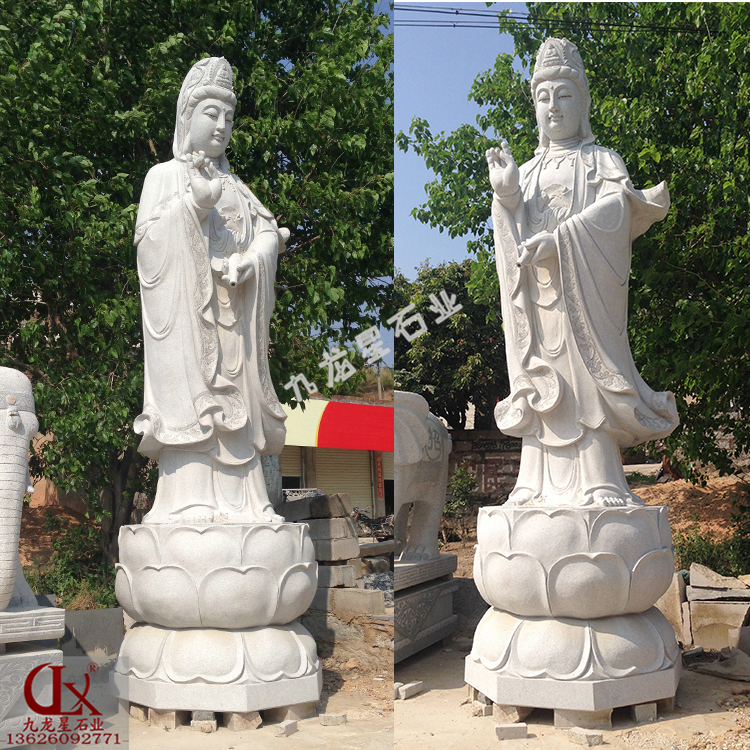 寺廟石頭觀音像雕像的常用石材一般有漢白玉大理石、芝麻白花崗巖兩種,而在經(jīng)濟(jì)條件答應(yīng)的情況下,以漢白玉石雕觀音菩薩最受大眾偏心。不同材質(zhì)對(duì)應(yīng)的石雕觀音菩薩價(jià)格也就不同。漢白玉在我國(guó)多個(gè)地區(qū)擁有豐厚的礦脈:河南、湖南、河北、北京、四川、廣西等,而其中最引人注目的便是北京房山漢白玉了,許多北京故宮的漢白玉雕塑都是用的房山玉,因此現(xiàn)在有些人也以使用房山漢白玉制造一些雕塑擺件為傲。另一種白色花崗巖則為芝麻白石雕觀音菩薩。芝麻白這種花崗巖石料是由黑白點(diǎn)顆粒凝結(jié)而成,所以無(wú)論是光面還是非光面都可以看到一點(diǎn)黑點(diǎn),以白色底為主。芝麻白這種石料遍布全國(guó),顆粒細(xì)膩程度不同,顏色深淺度不同,僅福建省內(nèi)就有近十種白石花崗巖。由于這種石料適合在室外擺放,用來制造寺廟石頭觀音像雕像非常合適,因此,現(xiàn)在這種料是國(guó)內(nèi)外使用量和使用率較高的一種觀音雕像用料。