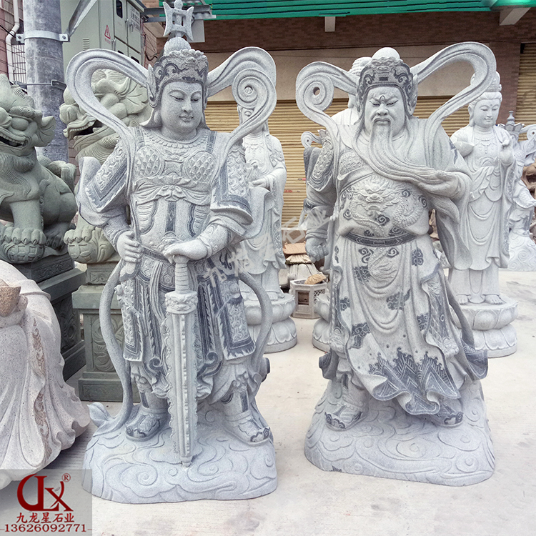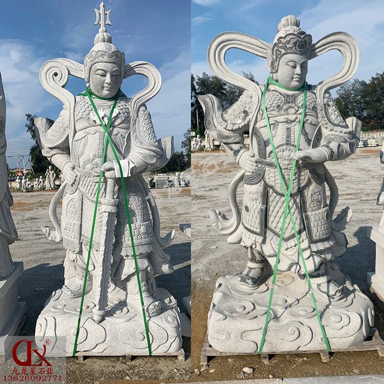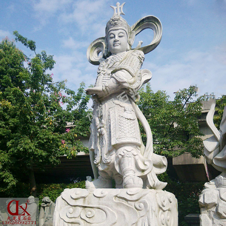 石刻韋馱菩薩除了在我國大陸各個釋教寺廟都能見到,在中國臺灣的廟宇中也是十分常見,但凡寺廟中有供奉觀音菩薩圣像的,大都回配祀伽藍與韋馱兩大護法菩薩。石刻韋馱菩薩圖片頭戴獸頭盔,身著甲胄,腰扎革帶,肩背飛帶,手持金剛杵是韋馱天的根本造型,有需要的臺灣寺廟朋友恭請韋陀尊天菩薩石雕像,歡迎來廠參觀定做,我廠致力于花崗巖、青石、白石等多種石材雕琢宗教佛神雕塑,質優(yōu)價廉,歡迎廣闊新老顧客來電咨詢。