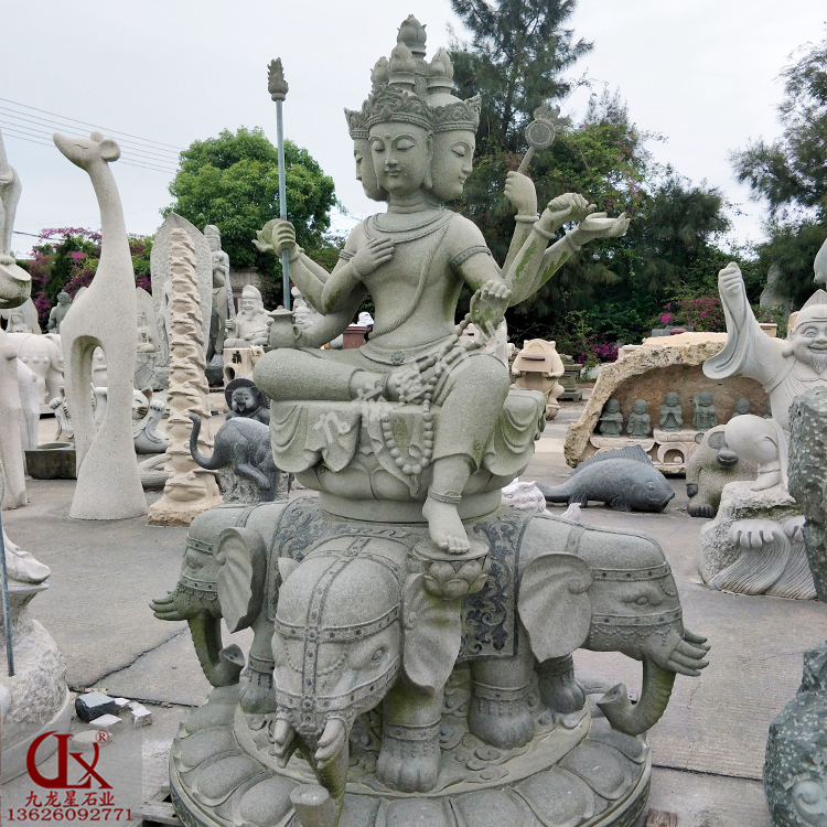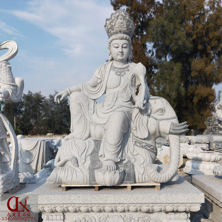文殊普賢菩薩圣像雕刻一般都是采用天然優(yōu)質(zhì)花崗巖雕刻,石材紋理美觀,雕刻線條流暢,純手工雕刻精美絕倫。普賢菩薩石像造型手持七寶蓮,神態(tài)端莊的坐于六牙白象背上,石雕普賢菩薩與觀世音菩薩,地藏王菩薩、石雕文殊菩薩合稱佛教四大菩薩,象征理德、行德。與釋迦牟尼佛如來、文殊菩薩又尊稱為“華嚴(yán)三圣”。