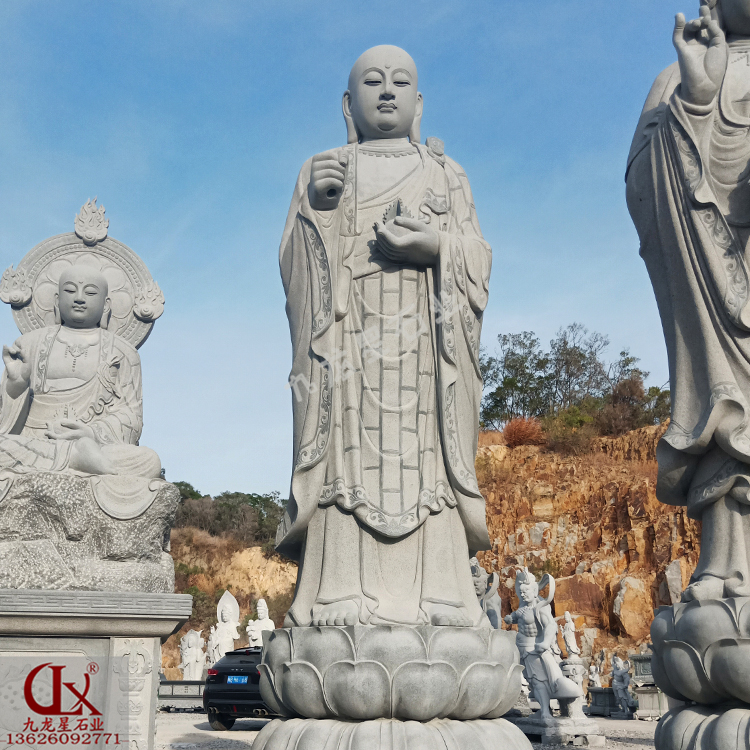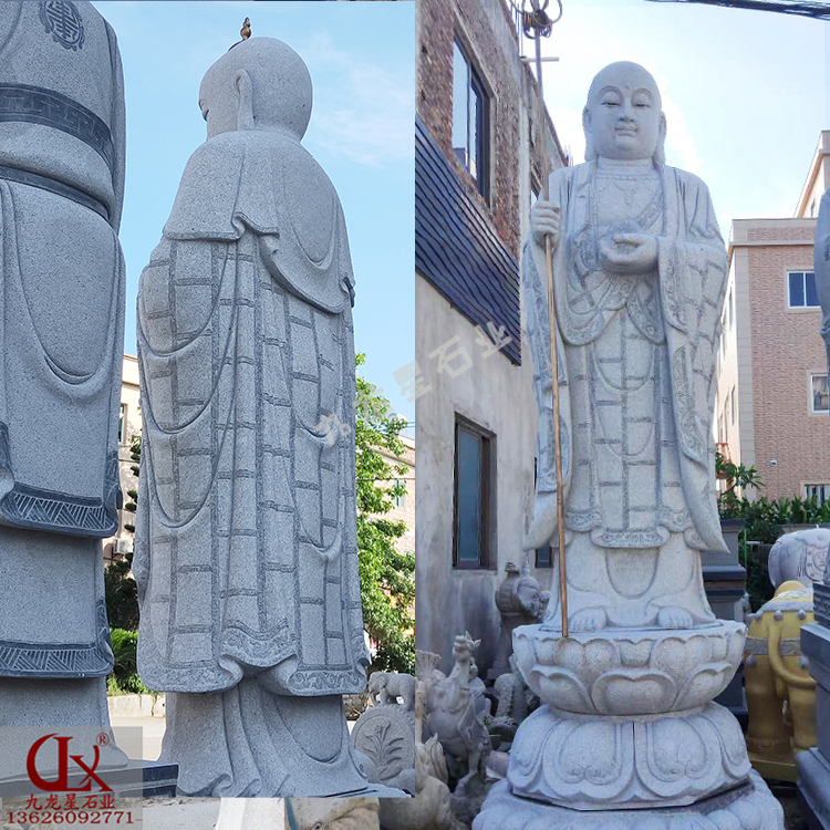 地藏王菩薩石雕像,不能說(shuō)誰(shuí)都知道,但有句話想必大家應(yīng)該都聽(tīng)過(guò)“地獄不空,誓不成佛”。這句話說(shuō)的就是“大愿地藏王菩薩”其實(shí)這句話的來(lái)源是淵源可以追溯的,其淵源就是地藏王菩薩的前世。石雕地藏菩薩(梵文: Kitigarbha),或稱(chēng)地藏王菩薩,曾音譯為“乞叉底蘗沙”。因其“安忍不動(dòng)如大地,靜慮深密如秘藏”,故名地藏。為佛教四大菩薩之一,與觀音、文殊、普賢一起,深受世人敬仰。以其“久遠(yuǎn)劫來(lái)屢發(fā)弘愿”,故被尊稱(chēng)為大愿地藏王菩薩。