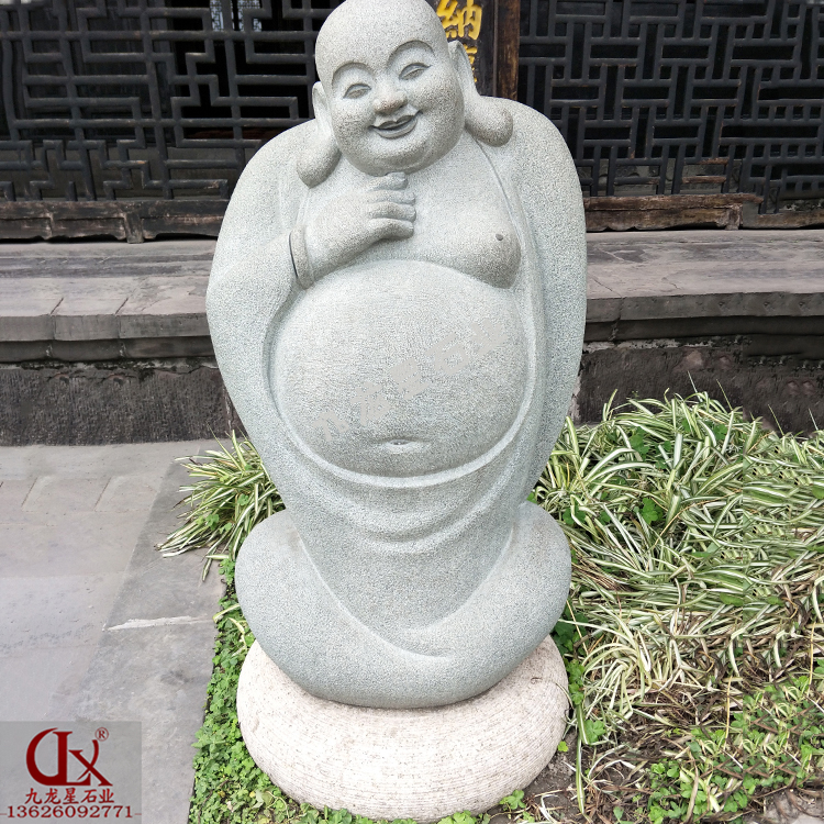 彌勒佛石像一般在佛教的寺院中都會(huì)見(jiàn)到,通常會(huì)將其尊俸在寺廟的前殿。也是因?yàn)榇蠖菑浝辗鹣竦拇阮伾颇?,有著寬宏大量以及慈悲為懷的胸懷。深受信眾們的尊重。一般人看?jiàn)彌勒佛像是會(huì)有著一種輕松愉快的心情。一般的寺院中都有對(duì)聯(lián)與彌勒佛像相伴:“大肚能容,容天下之難容之事;笑口常開(kāi),笑世間的可笑之人?!?啟迪人們寬容的心靈。為佛法莊嚴(yán)的寺廟帶來(lái)一些愉悅的氣氛。彌勒佛石雕多少錢(qián)一尊?