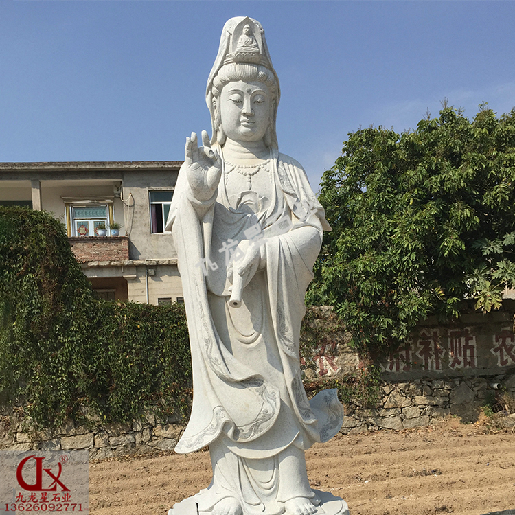 石雕觀音(寺廟觀音菩薩石像 露天石像雕刻觀音價格)——九龍星石業(yè)。