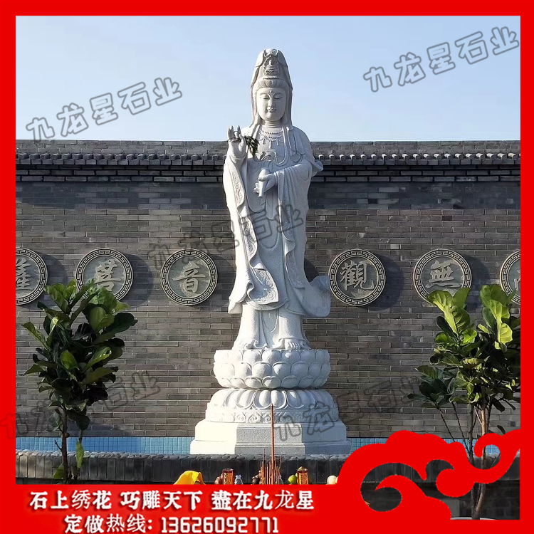 觀音菩薩石像圖片的做法有很多種,也表現(xiàn)出不同的象征寓意,比如送子觀音、如意觀音、送財觀音、滴水觀音、自在觀音等等,這些都有不同的意思表達。佛教寺院供奉觀音菩薩石雕既是該類宗教場所的標準配置,也是眾生發(fā)心祈愿才有的結果。