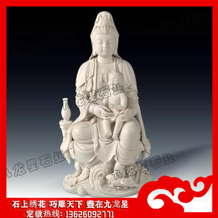 石雕觀音佛像(送子觀音石雕圖片大全 雕刻各種送子觀音石雕像)——九龍星石業(yè)。