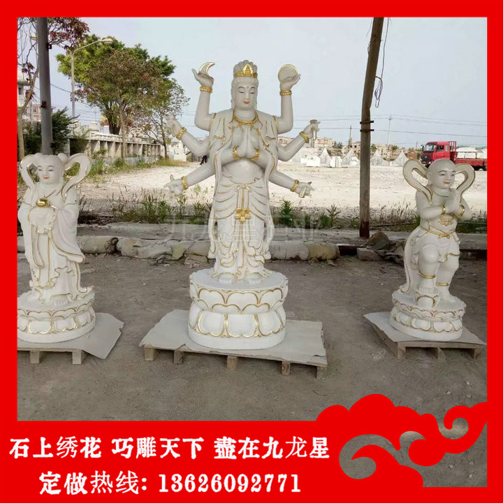 石雕觀音像雕刻考驗(yàn)的不僅僅是雕刻者的制作技巧,也是業(yè)界一直提倡的工匠精神。寺院的觀音菩薩石雕在加工制作過程中,對于力道和工具的要求極高。觀音菩薩石雕像的神態(tài)一定要好,入木三分。福建惠安石雕觀音像廠家之所以會如此出眾,就是因?yàn)樵诩?xì)節(jié)方面處理得好,并且對于石雕佛像的神態(tài)把控十分到位。