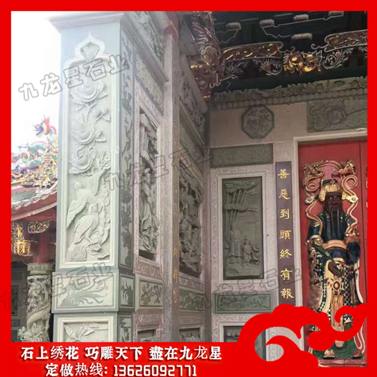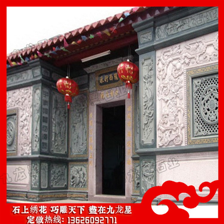 在寺院宗祠中,石雕建筑各種各樣,青石浮雕雕刻墻面的應用也是非常多,再者就是農(nóng)村祠堂了,農(nóng)村祠堂面積較小,但其形成也跟寺院相差無幾,因此在一些青石浮雕壁畫的應用上也是大同小異。
