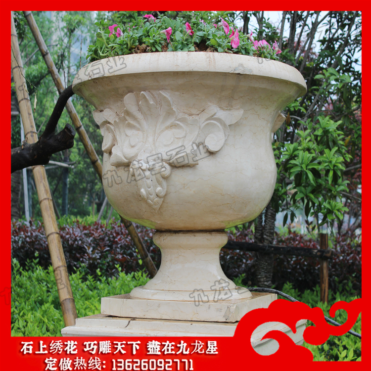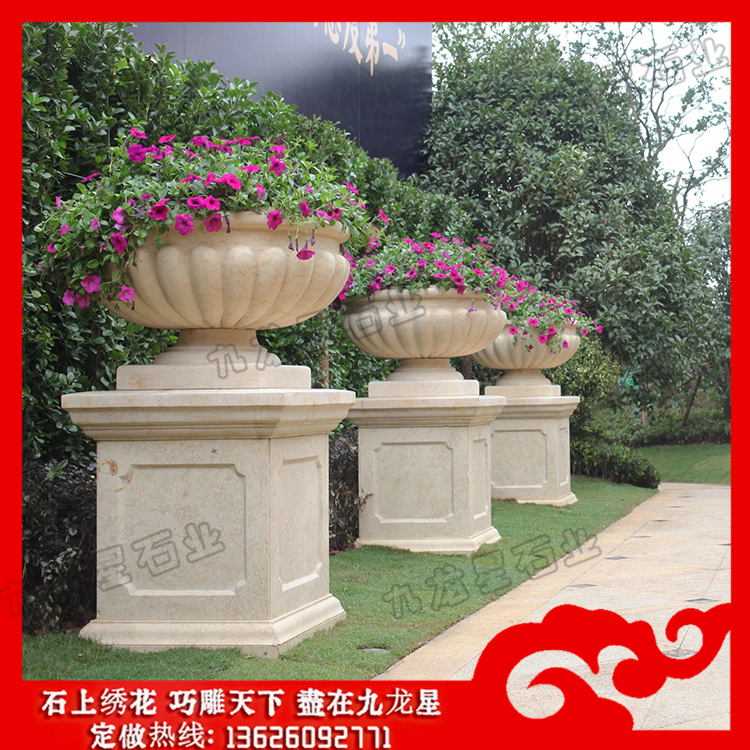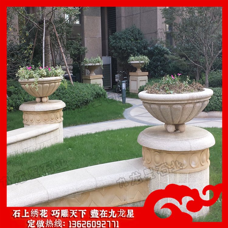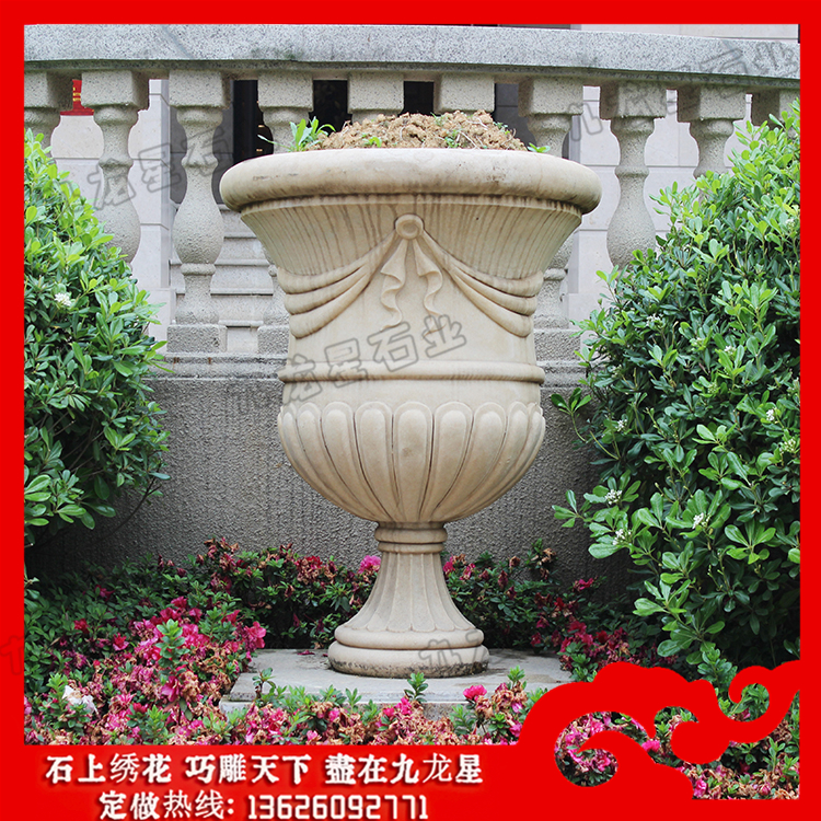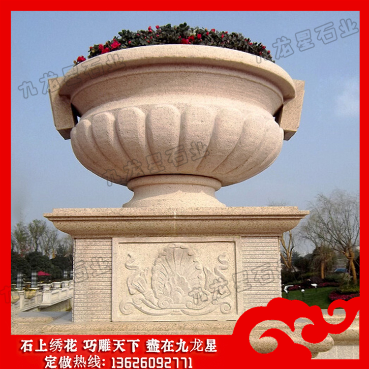 石材花缽(石雕花缽制作廠家 石花盆歐式花缽圖片)——九龍星石業(yè),廠家直銷,可定制。