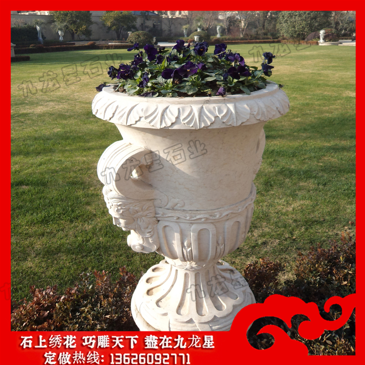 石雕花缽(大理石花缽批發(fā) 大型石制花缽加工)——九龍星石業(yè)。