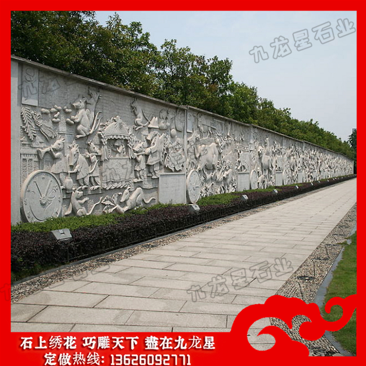 石材浮雕文化墻效果圖是浮雕藝術(shù)工藝中的系列之一。石材浮雕山水畫在城市美化環(huán)境中占了越來越重要的地位,不僅增加了城市文化氣息,同時又豐富了人們的視覺享受。浮雕一般是附屬在另一平面上的,因此在建筑上使用更多,用具器物上也經(jīng)常可以看到。由于其壓縮的特性,所占空間較小,所以適用于多種環(huán)境的裝飾。在園林廣場,酒店的墻面上,,它們都會采用石材浮雕山水畫在墻面上進(jìn)行雕花,雕刻各種精美的圖案,像植物動物圖案應(yīng)有盡有。還有小到現(xiàn)在的家庭裝修,很多都會在電視墻面上做一些浮雕圖案,給整個家增添了美觀效果,看起來更大氣。