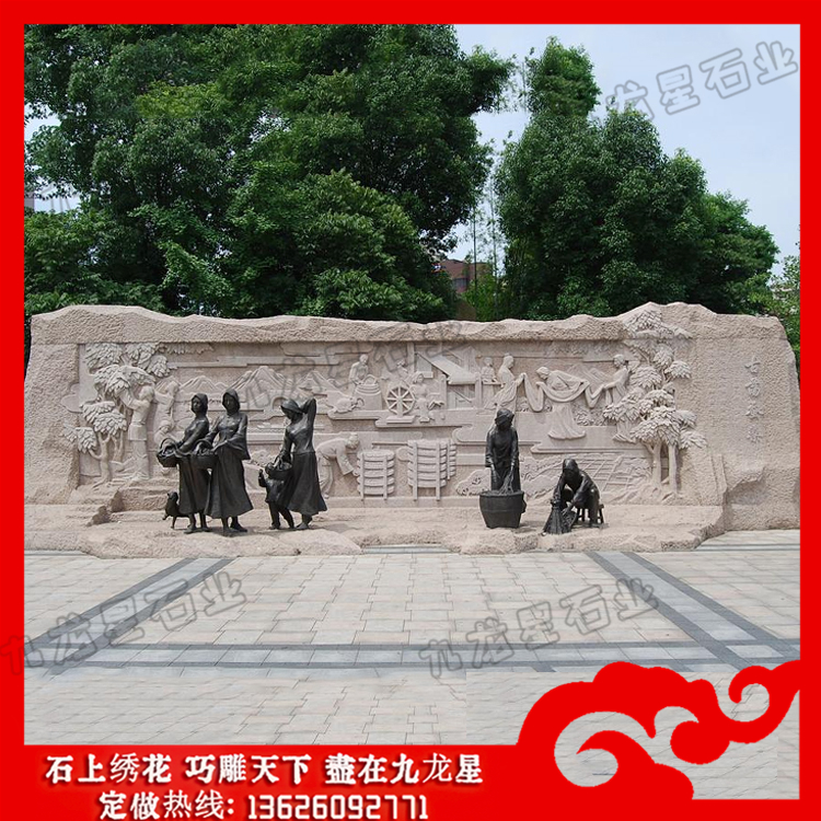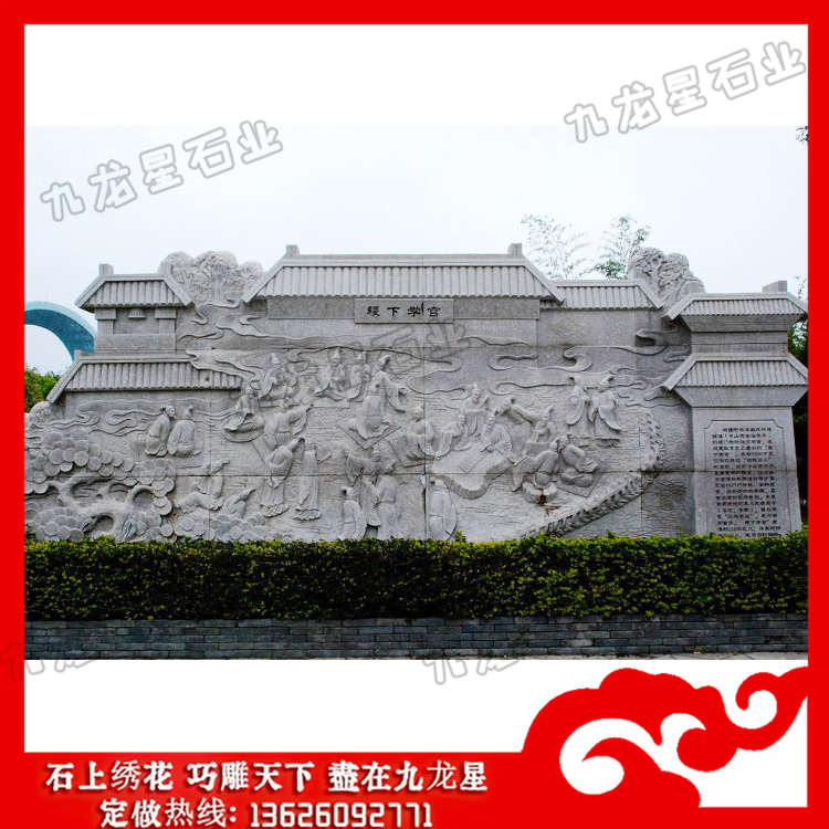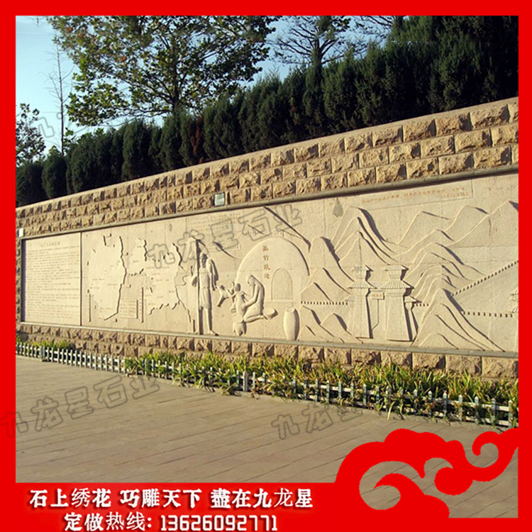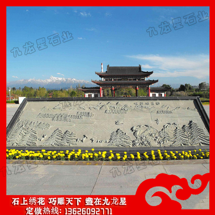 石雕浮雕(石材浮雕山水畫 石材浮雕文化墻效果圖)——九龍星石業(yè)。