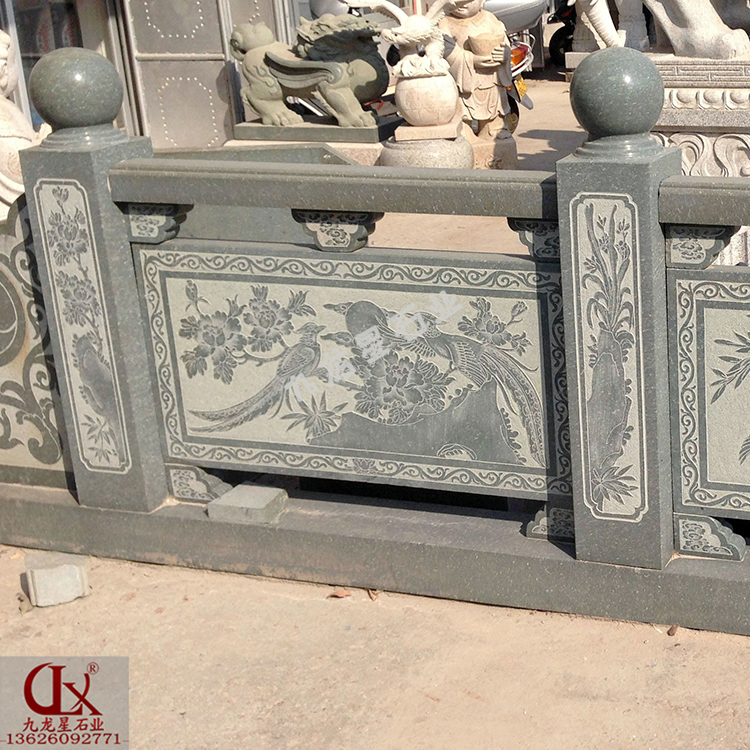 青石石雕欄桿雕花是比較具有特色的規(guī)劃,對(duì)用料和工藝的要求都十分高,挑選用料的時(shí)候也就要多留心。石欄桿圖片款式的用料數(shù)量與其本身的標(biāo)準(zhǔn)尺寸等直接相關(guān),在挑選的時(shí)候可以考慮到這一點(diǎn),結(jié)合欄桿的規(guī)劃情況等來挑選,力求能夠打造更契合需求的石材欄桿著作。