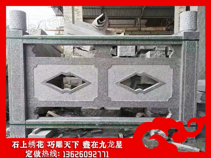 石雕欄桿效果圖應(yīng)用不同的場景高度設(shè)置不同,普通我們倡議具有平安防護(hù)功用的花崗巖石欄桿普通高度應(yīng)該大于0.9米,人們不應(yīng)過于追求外觀古樸、精致,而疏忽了平安防護(hù)作用。石雕欄桿效果圖的尺寸決定了它所消耗石材的多少。很顯然尺寸打的石欄桿所需要的石材更多,因此花崗巖石欄桿價(jià)格必然會(huì)更高。兩個(gè)相同質(zhì)量的石欄桿,表面積越大的價(jià)格越貴,高度越高的價(jià)格越貴。因此在設(shè)計(jì)石欄桿的時(shí)候既要考慮美觀度、防護(hù)性的要求,也要根據(jù)工程的預(yù)算適當(dāng)?shù)募s束一下欄桿的尺寸。更多花崗巖石欄桿價(jià)格一般多少的細(xì)節(jié)信息,歡迎直接致電咨詢。