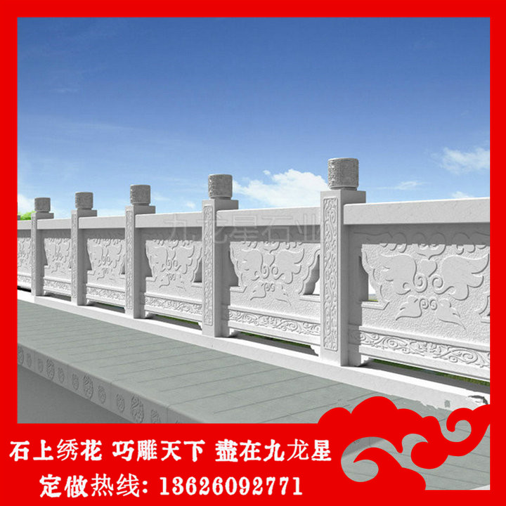 橋欄桿石材的制作材料有很多中,例如有青石、花崗巖、漢白玉、綠砂巖、芝麻白、芝麻灰等多種石材,橋梁欄桿通常作為建筑的輔助設(shè)計所在,在選擇石材的時候既要結(jié)合建筑風(fēng)格,又要考慮到橋欄桿石材的安全性和牢固性。一般在設(shè)計制作的時候需要用料搭配,石材的選擇很多,所提供的設(shè)計也有很大的不同。橋梁欄桿多少錢一米和石材選擇是有著很大的關(guān)系,就拿青石來說吧,現(xiàn)在的青石價格上漲的比較厲害,那么青石制作的橋梁欄桿價格就還高一些的。