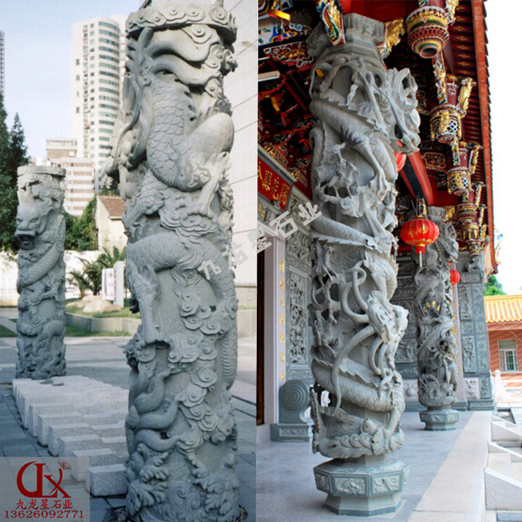 石龍柱加工價格 寺院雕塑龍柱定價