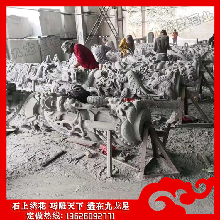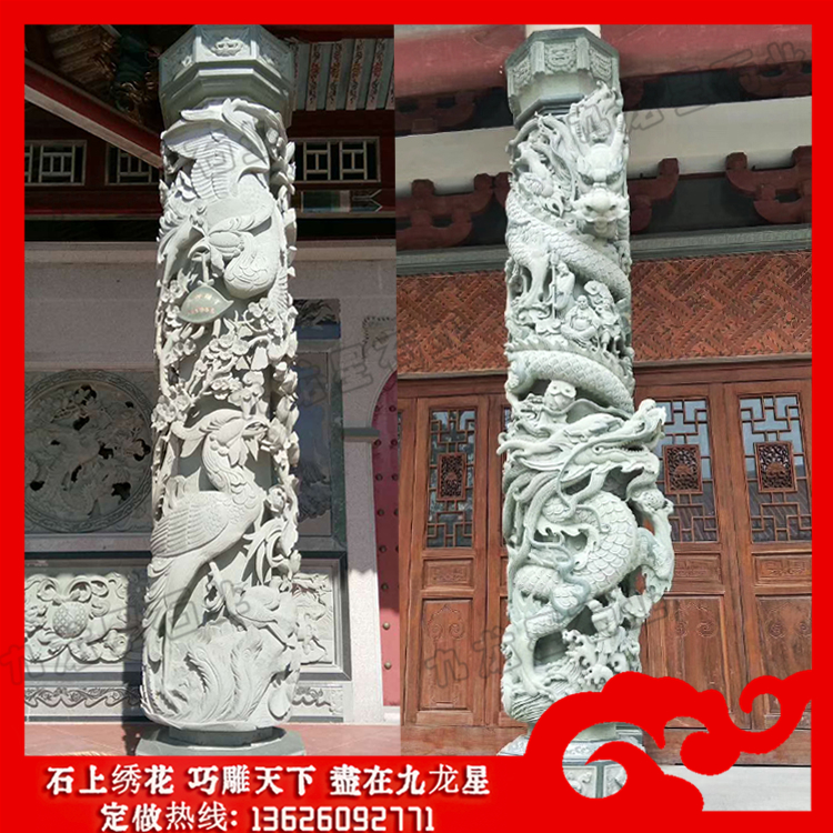 石雕龍柱對(duì)于現(xiàn)在的建筑來說是一種非常豐富的藝術(shù)表現(xiàn)形式,它能夠讓人們?cè)谏町?dāng)中更好地貼近美、感受美、了解美,并且能夠通過各種不同的形象與形式,為大家?guī)砗芎玫恼嬗绊懀彩沟么蠹铱梢栽诘玫綄?shí)用的保護(hù)效果的同時(shí),更能夠通過青草石石雕龍柱來表現(xiàn)自己的審美,并且能夠?yàn)榻ㄖ砹己玫脑錾饔?。石雕龍柱制作價(jià)格的高低不一,不管是材質(zhì)、尺寸、造型、雕刻工藝都直接影響后面的報(bào)價(jià)。