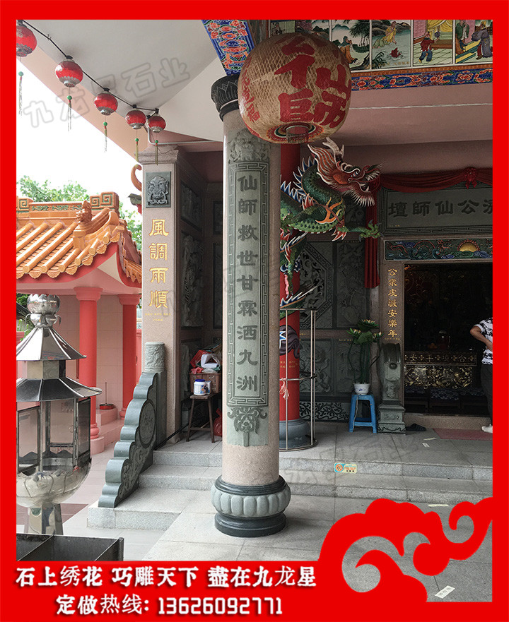 石柱子(寺廟里的石雕圓柱 石材圓柱雕刻價格)——九龍星石業(yè)。