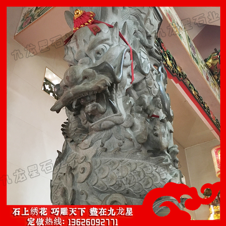 石頭雕刻龍柱廠家做工精湛,一般的龍柱的龍紋雕刻斗士3-5公分,而寺院的就有70cm深,層次感非常鮮明。另外寺院雕刻龍柱上面的祥云及龍爪首飾掏空雕刻,也就是大家認識的透雕。龍身的鱗片也是一片片打磨出來的,可見寺廟的龍柱做工十分復(fù)雜精湛,給人一種栩栩如生,感嘆不已的感覺。龍柱頭是朝向前來拜佛的人們,給人一種崇敬的信仰。