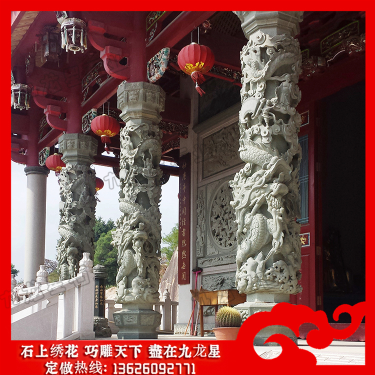 石頭雕刻龍柱的使用范圍越來越廣了,寺院雕刻龍柱圖片對于現(xiàn)在的建筑來說是一種非常豐富的藝術(shù)表現(xiàn)形式,它能夠讓人們在生活當(dāng)中更好地貼近美、感受美、了解美,并且能夠通過各種不同的形象與形式,為大家?guī)砗芎玫恼嬗绊?,也使得大家可以在得到實用的保護效果的同時,更能夠通過它來表現(xiàn)自己的審美,并且能夠為建筑帶來良好的增色作用。