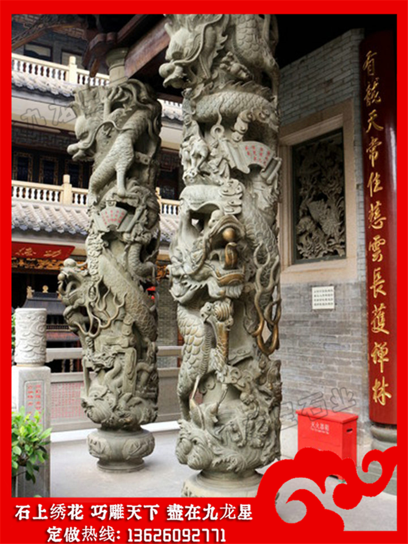 石雕龍柱代表的是一種頂天立地的氣場,都是當(dāng)代人們針對(duì)古代石雕工藝品手藝的這種承傳和持續(xù),因此人們可以發(fā)覺許多的地區(qū)針對(duì)石雕工藝品龍柱的應(yīng)用能夠說越來越廣泛,并且根據(jù)如今的手工雕刻加工工藝的發(fā)展和高新科技水準(zhǔn)的提升,人們見到的許多龍柱上邊手工雕刻的飛龍全是惟妙惟肖的,加上石雕龍柱是中華文化十分具備象征性的一個(gè)房屋建筑,并且它存有的歷史時(shí)間都是十分的久遠(yuǎn)的,因而如今就被授予了大家針對(duì)吉祥如意的這種寓義。石雕龍柱多少錢一個(gè),因?yàn)榭钍降亩鄻踊约笆系倪x擇很多,所以價(jià)格高低也會(huì)有很多的區(qū)別,致電九龍星石業(yè),提供您的需求,我們將為您提供合適實(shí)惠的報(bào)價(jià)。
