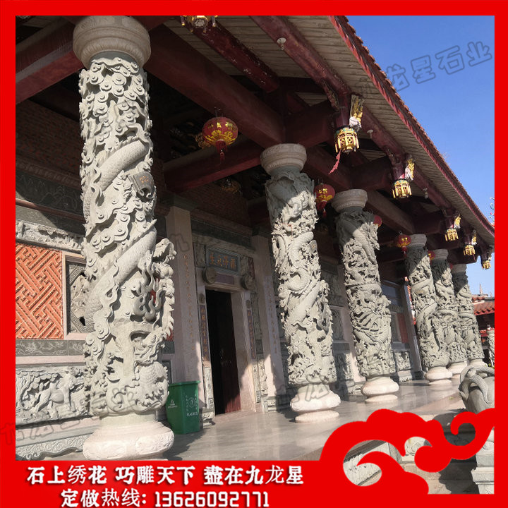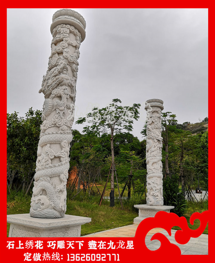 石雕龍柱(石雕二龍戲珠龍柱 哪里可以買到石雕龍柱)——九龍星石業(yè)二十年石雕廠家,廠家直銷。
